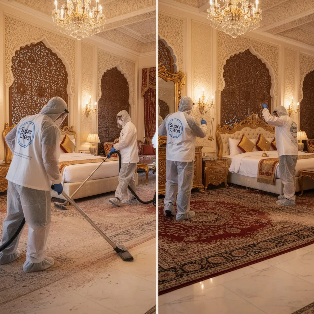 هل لديكم معدات خاصة لتنظيف الواجهات الزجاجية العالية نعم، لدينا معدات تنظيف الواجهات الزجاجية العالية بأنظمة الأمان الكاملة. نستخدم أذرع تلسكوبية ومكانس مياه للارتفاعات المتوسطة، وللواجهات العالية جداً نتعامل مع مقاولين متخصصين معتمدين.