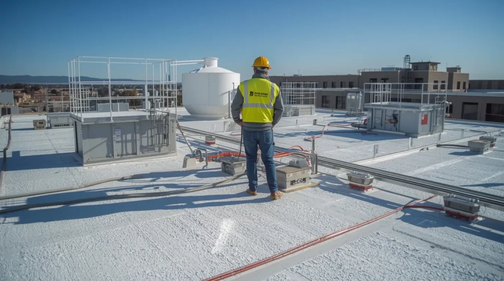 مثال عملي: إذا كان سطحك خرساناً مسطحاً وتعاني من الحرارة والتسرب، فغالباً ما ننصح بالبولي يوريثان فوم (الرش) لأنه: